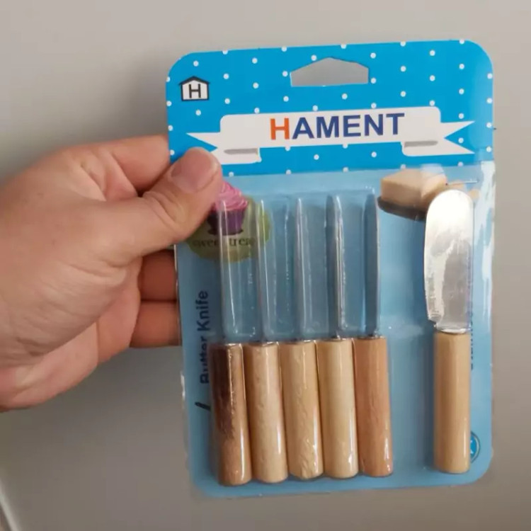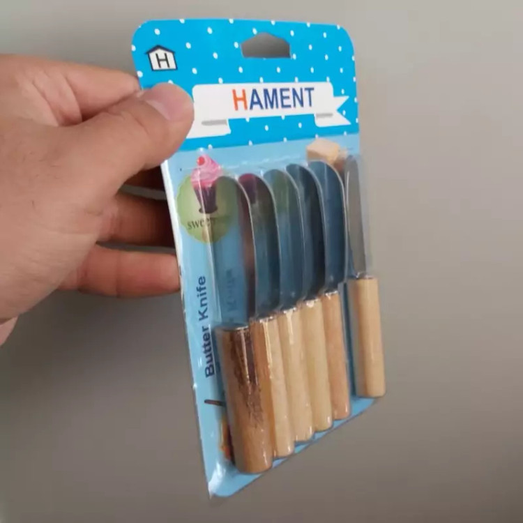 مجموعه 6 عدد کارد کوتاه بامزه برای کره، پنیر، مربا ، خامه و ... جنس تیغه استیل و دسته چوبی